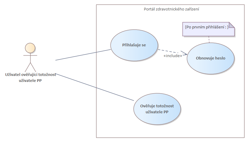 Portál ZZ a Uživatel ověřující totožnost uživatele PP : Use Case diagram